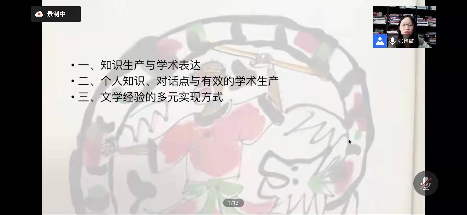11月26日,复旦大学中文系副教授、知名青年作家张怡微以《谈谈方法:从文学经验到知识生产》为题,从“知识生产与学术表达”“学术表达与个人知识”“文学经验的多元实现方式”三个方面,向学生分享论文写作的心得。她首先强调学术写作中的问题意识,指出写作时要针对问题的来源、写作的目的以及论证方法反复思考、质疑,并以王德威教授的论文《海派文学,又见传人》为例,详细阐述了学术表达的过程与方法,明确学术论文的本质是知识的生产,学术论文的结论则是作者不断修订的结果。在此基础上,张老师阐释学术写作的概念,并以创意写作的“默识”现象为例,分析探讨了现代散文写作的问题。张老师强调,在学术写作的过程中需要打破“默识”,使个人知识走向公共知识,同时要适当运用交叉学科的研究方法。作为学术生产者必须要有对话意识,在对话的过程中促进学术的进步与学科的完善。最后,张老师围绕“我们要如何找到适合自己的文学创作形式?”这一问题,区分小说、散文、非虚构写作以及民族志写作的概念,并用如何写人的例子作了具体分析,提出在文学表达过程中需要明确如何处理“自我”的问题,理解人的复杂情感、表达人的复杂欲望与心灵景观。