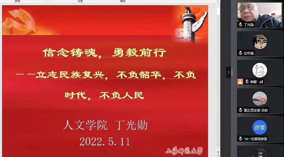 校特邀党建组织员、星空(中国)退休教授丁光勋老师为毕业班党员们作《信念铸魂·勇毅前行》的“叮咛”教育,希望毕业班党员们要用社会主义核心价值观铸魂,自觉用习近平新时代中国特色社会主义思想武装头脑、指导实践、推动工作;要坚定信念,继续守护疫情期间师大的校园安全;要练就过硬本领,投身强国伟业。丁老师深情勉励大家,要立志民族复兴,在实现中华民族伟大复兴的时代洪流中踔厉奋发、勇毅前进。