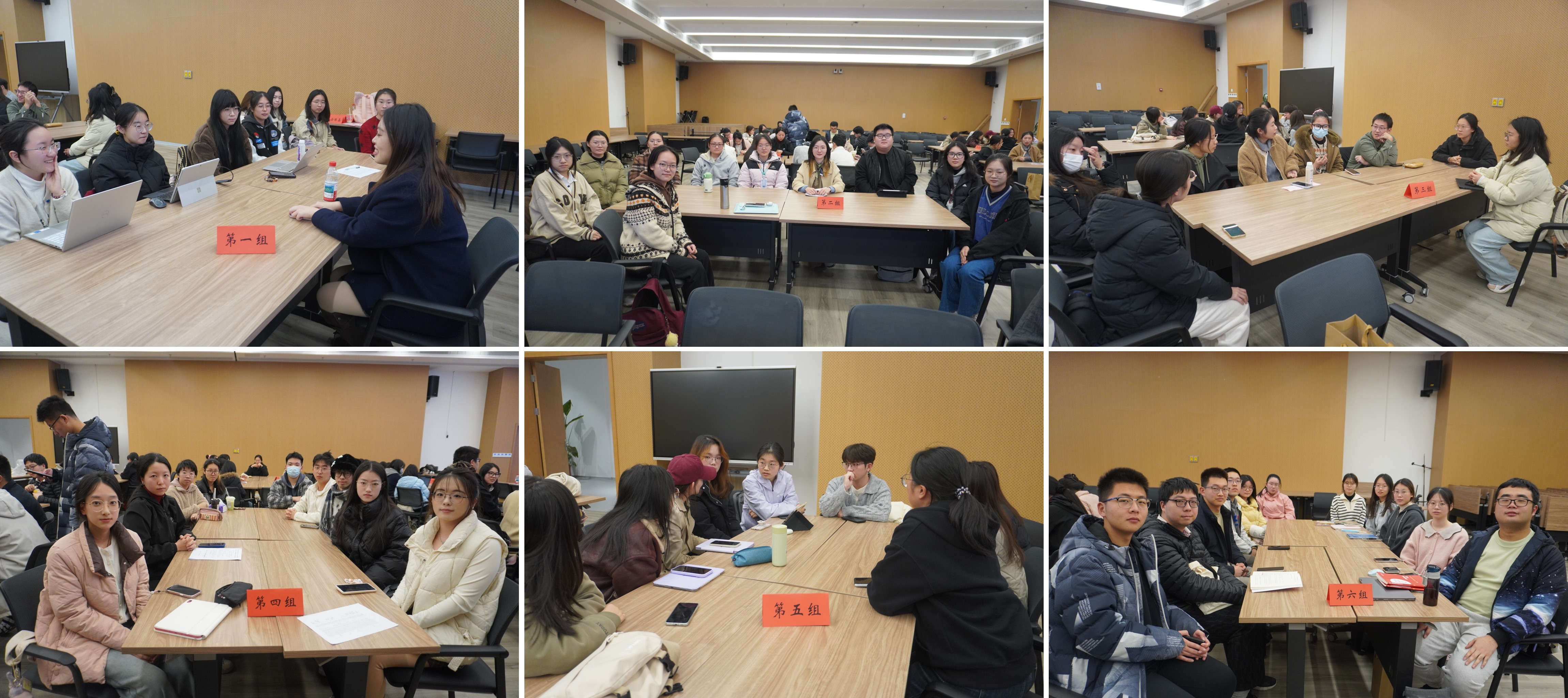 本次活动还特别邀请到金陈嘉、唐思齐、蔡笑、王豆豆、沈悦悦、倪佳豪等7位来自学科教学(语文)、学科教学(历史)等相关专业的研究生来到现场,以朋辈引领的方式开展小组讨论。同学们踊跃交流备考困惑、参与实战模拟,指导嘉宾现场答疑,互动热烈,有效提升了同学们的备考信心与策略运用能力。同时,研究生同学也为他们如何更好规划个人本科阶段的学习提供了参考意见。活动现场气氛热烈。
