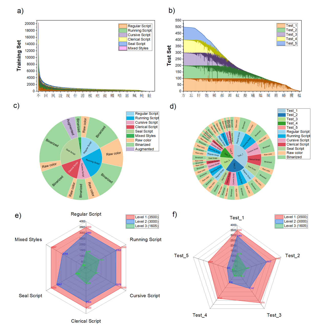作为中华文明的重要载体,古汉字在数千年演变过程中形成了甲骨文、金文、篆书、隶书等多样化形态,其结构特征与现代汉字存在显著差异。这些文字广泛留存于古籍文献、碑刻拓片、书法作品等载体中,其准确识别往往需要深厚的古文字学专业知识。随着深度学习技术的发展,卷积神经网络(CNN)与视觉Transformer(ViT)被广泛应用于各类汉字识别。然而现有研究多集中于单一字体或载体类型汉字识别,如针对甲骨文或简牍帛书的专项识别。这种研究范式存在明显局限性:一方面难以适应不同历史时期、不同地域古汉字在结构和形态上的巨大差异;另一方面无法满足实际应用场景中多类型汉字混合识别、多载体联合处理的现实需求。同时,自然场景下的古汉字识别还面临三大核心难题:一是字符类型复杂多样,涵盖不同历史时期的多种汉字;二是待识别字符数量庞大,系统性处理难度高;三是应用场景分布广泛且环境复杂。这些因素共同构成了制约当前古汉字识别研究发展的关键瓶颈,亟需通过构建大规模多类型汉字数据集和开发通用识别模型来突破。