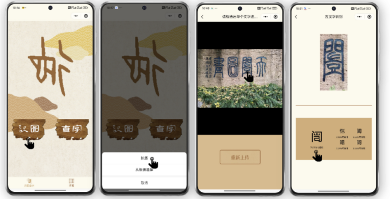 在论文提出的轻量化网络模型基础上,研究团队进一步开发了智能云端古汉字识别小程序。该小程序融合场景文本检测算法,能够实现对多样化场景中各类古汉字的实时精准识别,为用户提供便捷高效的古文字识别服务。论文开源地址:https://github.com/1602353775/HUNet