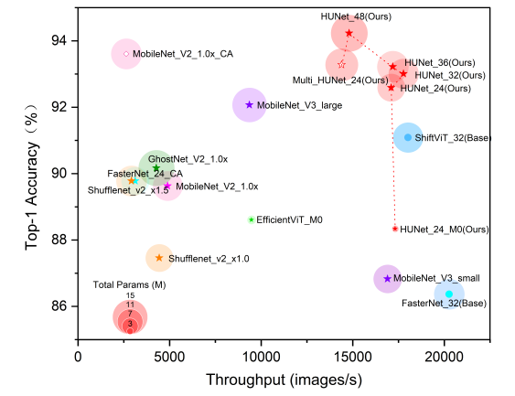 HUNet与其它高效模型性能对比