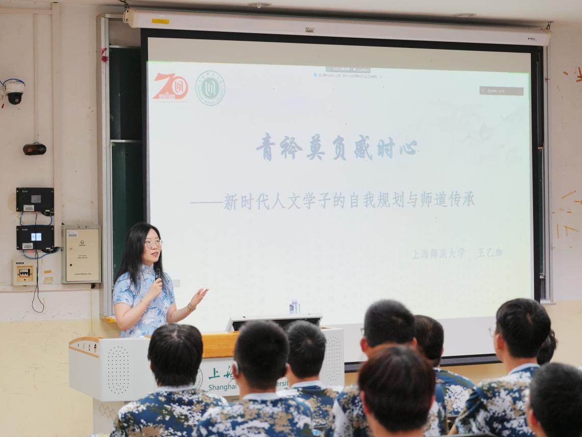 “人文学科的责任,从不是孤立的知识传递,而是要把‘为天地立心,为生民立命’的精神火种,播撒进每一代青年心中。”讲座现场,王老师从“时光剪影”“自我询问”“感时之心”三个板块切入,鼓励同学们培养对书籍的迷恋、对学术的虔诚、对未知的探索,在大学期间享受纯粹读书与做事的时光,传承治学精神,力求找到“闪闪发光的自己”。王老师在讲座中特别融入了对教育家精神的深刻解读,以廖世承、马茂元等教育名家为引,强调教育家精神不仅是知识的传递,更是文化守护、信仰传承与师道永续的结合。