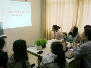 活动中,汪老师则以“中学历史课堂教学中对史料、教材处理的实践操作举萃”开场,结合自身教学实践活动中的经历体会,从三个方面为学生详细讲解了如何利用史料开展中学历史教学:一是充分合理利用教科书现成的资源;二是巧妙处理所运用的材料;三是对教材内容的整合。苏老师运用精心准备的课件图文并茂地展现了大量生动有趣的历史故事以及相对应的教学方法;同时苏老师将自己用心整理的教案样张印发给在场同学,希望能对今后他们的应聘试讲有所裨益。两位老师的讲解深入浅出,形象生动,活动现场气氛轻松活跃,在座的学生均表示对中学历史课堂设计有了更新更好的认识。