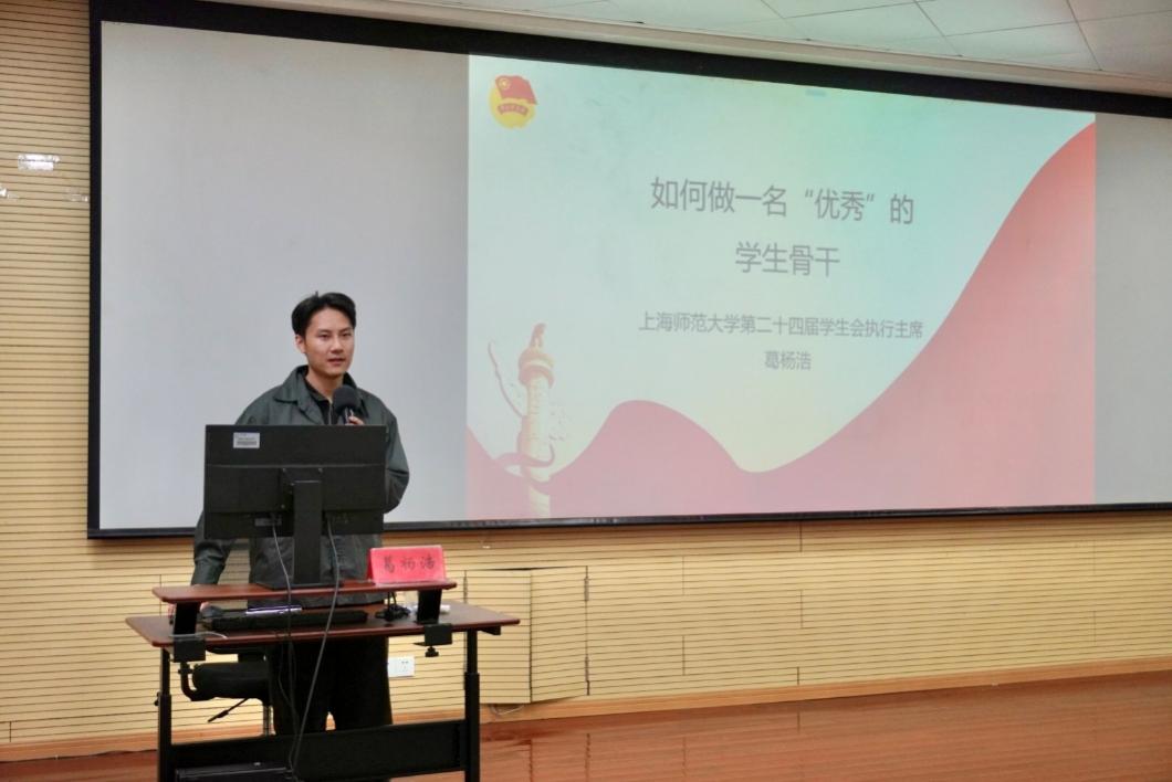 10月22日16:25-17:15,市学联驻会执行主席、校第二十四届学生会执行主席葛杨浩受邀解读全国学联第28次代表大会精神。他结合自身经验,分享对于如何做好一名学生骨干的看法和建议。他强调了学生工作的重要性,鼓励大家以“时不我待、只争朝夕”的精神投入到学习和工作中。